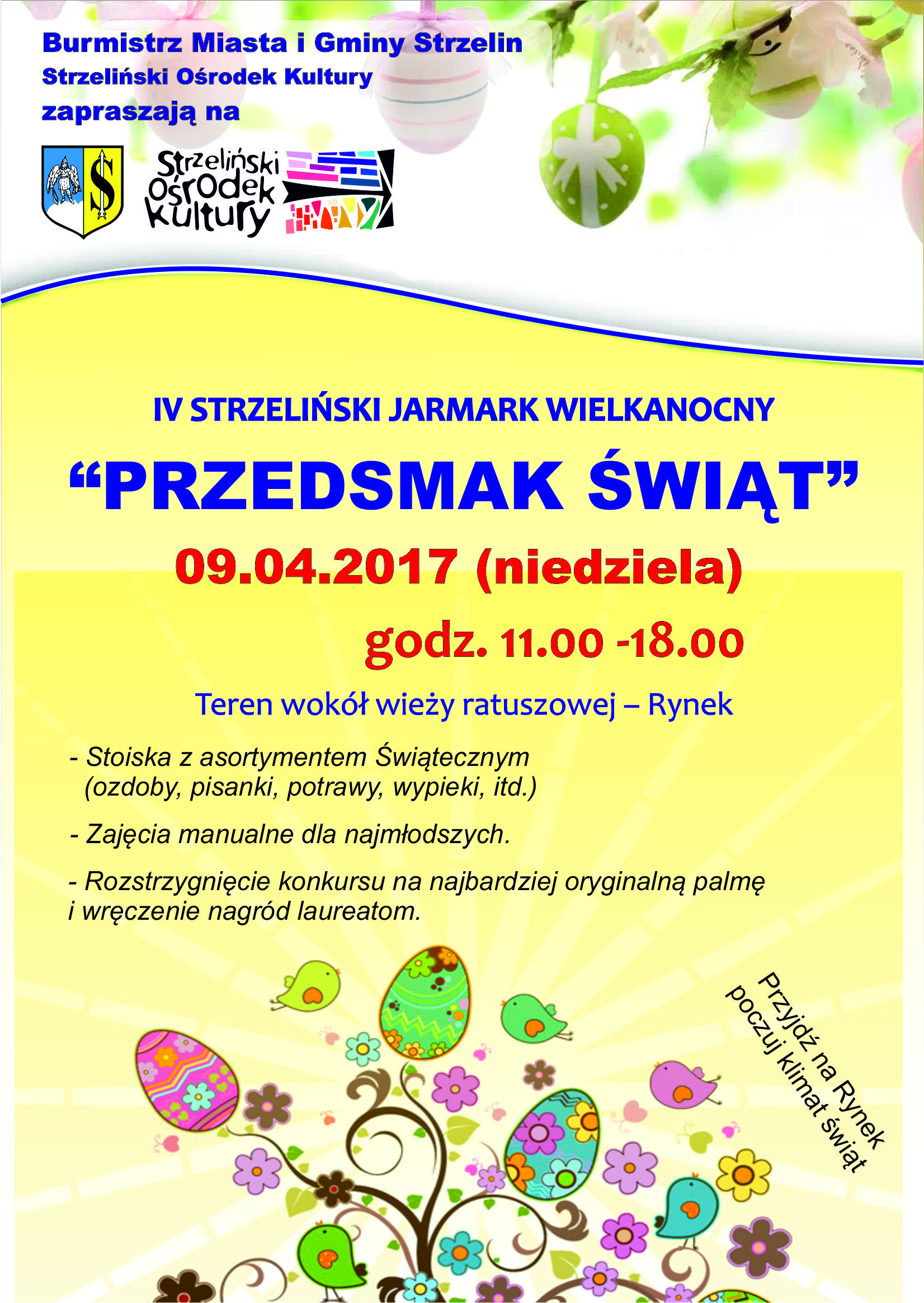 Serdecznie zapraszamy na IV Strzeliński Jarmark Wielkanocny, który odbędzie się już w najbliższą niedzielę naszym rynku.