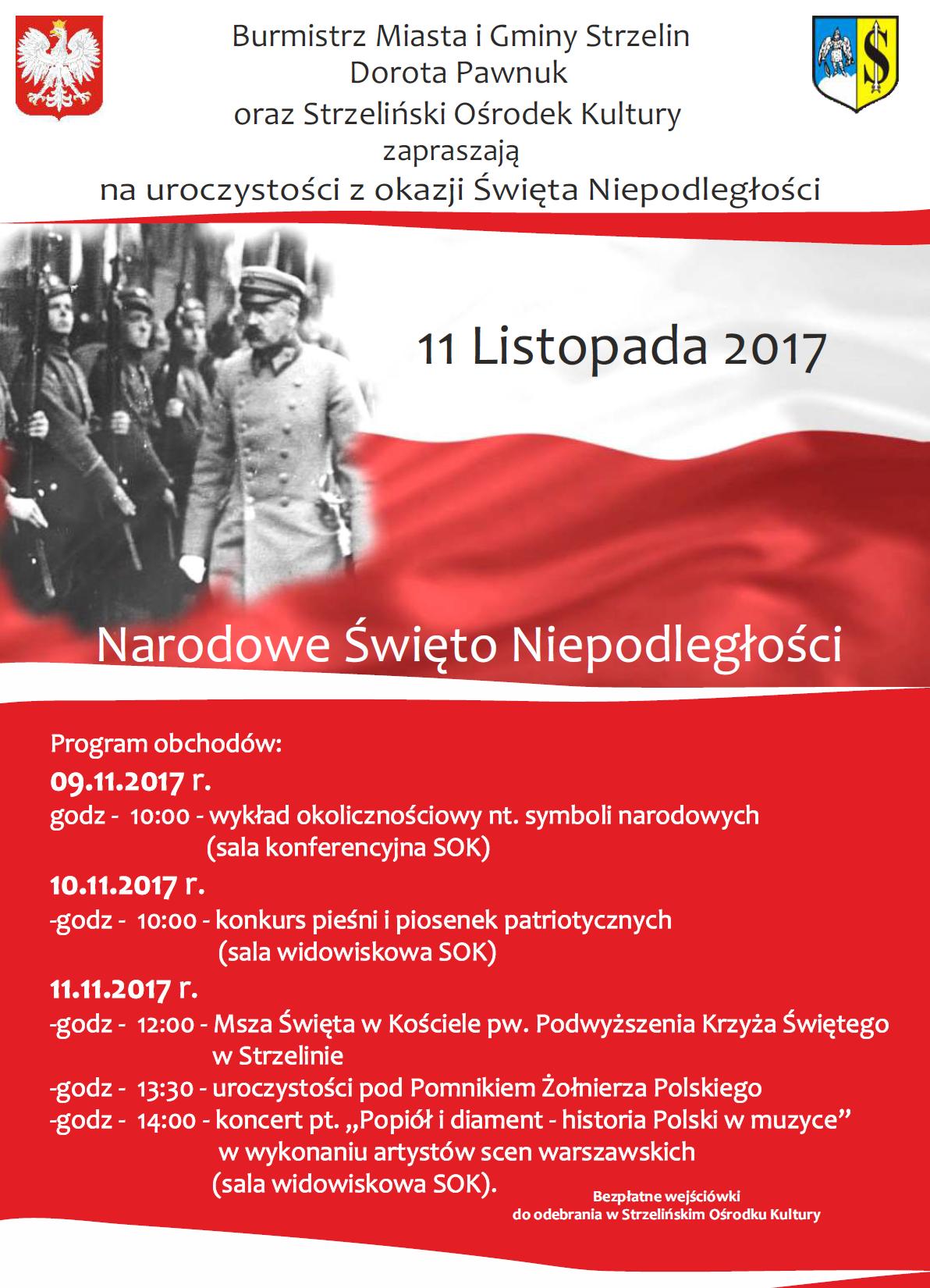 Serdecznie zapraszamy mieszkańców miasta i gminy Strzelin na strzelińskie obchody Narodowego Święta Niepodległości. Program na plakacie. Plakat w formacie JPG jest dostępny TUTAJ
